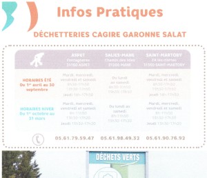 Nous vous communiquons les horaires d'été de la déchetterie d'Aspet avec un petit rappel du tri selectif